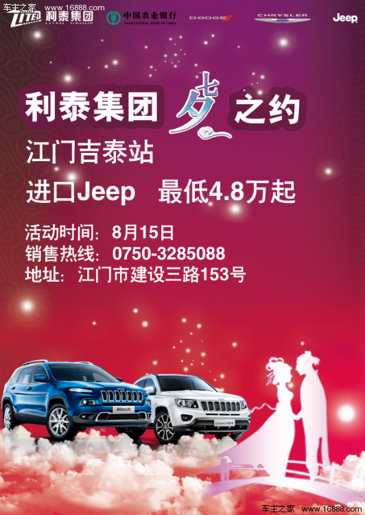 [导读]8月15日,利泰集团携旗下100多家品牌4S店,精心奉上浪漫约“惠”七夕活动,陪您提前过七夕,购车最低可享7.7折,更有七重清凉购车礼遇,让你和爱人尽享冰爽购车优惠价,心情high翻天! ![]() 高温未退,热热热!清凉购车,爽爽爽! 初入立秋,各地“烧烤模式”延续,如何减“炎”值?恰遇七夕,良辰可贵,到哪“趴”才是能跟爱人惬意共享的甜蜜胜地?毋需烦躁,8月15日,利泰集团携旗下100多家品牌4S店,精心奉上浪漫约“惠”七夕活动,陪您提前过七夕,购车最低可享7.7折,更有七重清凉购车礼遇,让你和爱人尽享冰爽购车优惠价,心情high翻天!