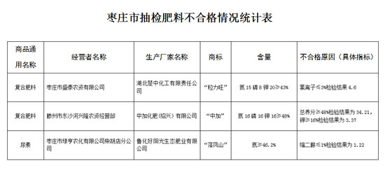 近日,枣庄市工商局向社会公布了化肥抽检公告。《流通领域肥料质量专项抽检结果公布》显示,枣庄全市共抽取42个品牌肥料样品,检验结果39个品牌合格,“粒力旺”、“中加”、“落凤山”3个品牌不合格。 ![]() 枣庄全市共抽取42个品牌肥料样品,检验结果39个品牌合格,“粒力旺”、“中加”、“落凤山”3个品牌不合格 大众网枣庄8月26日讯(记者 孟令洋)近日,枣庄市工商局向社会公布了化肥抽检公告。《流通领域肥料质量专项抽检结果公布》显示,枣庄全市共抽取42个品牌肥料样品,检验结果39个品牌合格,“粒力旺”、“中加”、“落凤山”3个品牌不合格。 大众网记者了解到,根据省工商局关于开展全省流通领域肥料质量专项抽检工作通知精神,由山东出入境检验检疫局检验检疫技术中心抽样人员进行现场抽样,并委托山东出入境检验检疫局检验检疫技术中心检验,在枣庄全市共抽取42个品牌肥料样品,检验结果39个品牌合格,3个品牌不合格。 在《枣庄市抽检肥料不合格情况统计表》显示,枣庄3个不合格品牌分别是“粒力旺”、“中加”、“落凤山”。其中,湖北楚中化工有限责任公司生产的商标为“粒力旺”复合肥料,因氯离子≤3%检验结果4.6不合格被曝光,经营企业是枣庄市盛泰农资有限公司;中加化肥(绍兴)有限公司生产的商标为“中加”复合肥料,因总养分≥48%检验结果为34.21、钾≥16%检验结果为3.37两项指标不合格被曝光,经营企业是滕州市东沙河兴隆农资经营部;鲁化好阳光生态肥业有限公司生产的商标为“落凤山”的尿素因缩二脲≤1%检验结果为1.22不合格被曝光,经营企业是枣庄市绿亨农化有限公司柴胡店分公司。 《流通领域肥料质量专项抽检结果公布》称,2015年6月1日枣庄市工商局收到山东出入境检验检疫局检验检疫技术中心出具的检验报告,并于当日将检验报告送达当事人。对3家销售不合格肥料经营户立案调查。在调查中,当事人在法定期限内未提出复检申请。截至2015年7月30日上述销售不合格肥料案已全部处理结案。 |