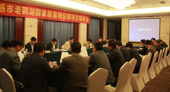 孝感市老鹳湖国家级湿地公园项目现场会在应城召开会议现场。