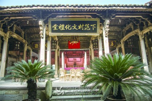 7月26日,金东区岭下镇岭五村坡阳古街北边的入口处,一对父女正在仔细看着墙上迎花树图的说明。父亲名叫冯应祥,刚刚从外地迁来。“我不是本地人,没想到金东有这么多非遗,以后有机会要带女儿多看看。”