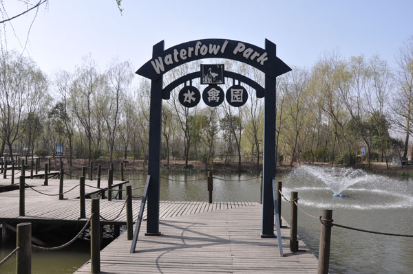 大门由五条篙子船相叠而成,象征一年一度的中国姜堰·溱潼会船节在此举行 。景区大门上方的“溱湖国家湿地公园”八个大字,则是由中国野生动植物保护协会会长、原国家林业局副局长赵学敏先生亲笔题写的。