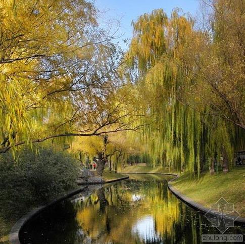 公园东部是“绿毯诗韵”景区。林木茂密,碧草萋萋,“缘话竹君”、“萌亭报春”位于其内。从整体布局上看,这里是全园的“序曲”。