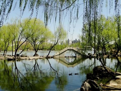紫竹院栽种荷花已有40多年的历史,确有“接天莲叶无穷碧”的景致。现又在莲湖中间开挖了一条长约800米的曲折航道,“荷花渡”因此得名。