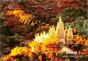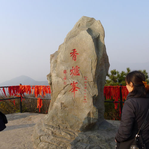 香炉峰至高点海拔557米,香山公园最高处,因其地势陡峭,登攀困难而俗称“鬼见愁”。香山公园先后在顶峰建起三个有特色的亭子。“重阳阁”意在九九重阳登之可望京城。“踏云亭”因秋雨后,春雨前缕缕云丝穿行亭内外,犹如踏云一般而得名,“紫烟亭”因晨夕之际的薄雾淡淡如紫色云霭,时隐时现,颇有日照香炉生紫烟的味道而得名。站在白玉观景台上,远处昆明湖宛如一盆清水,各式建筑星罗棋布。